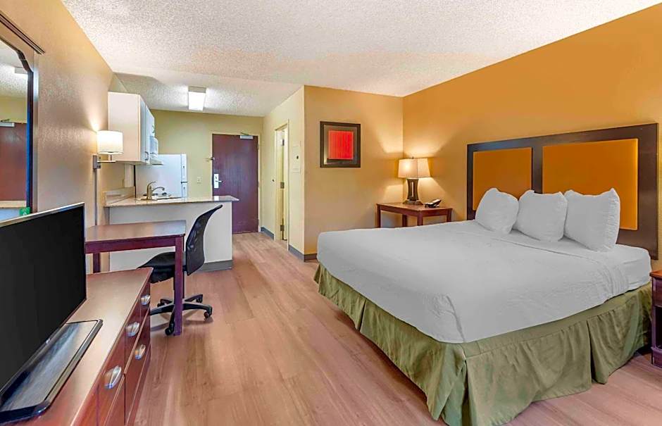 1 King Bed, kitchen, dining and work area, non-smoking